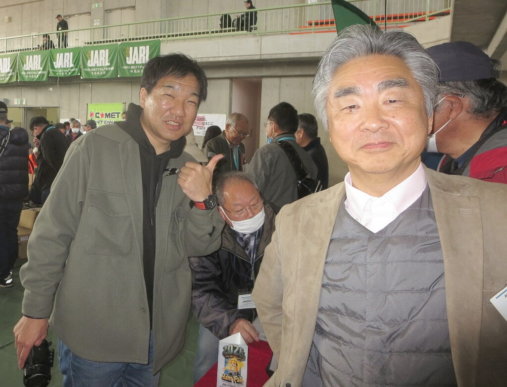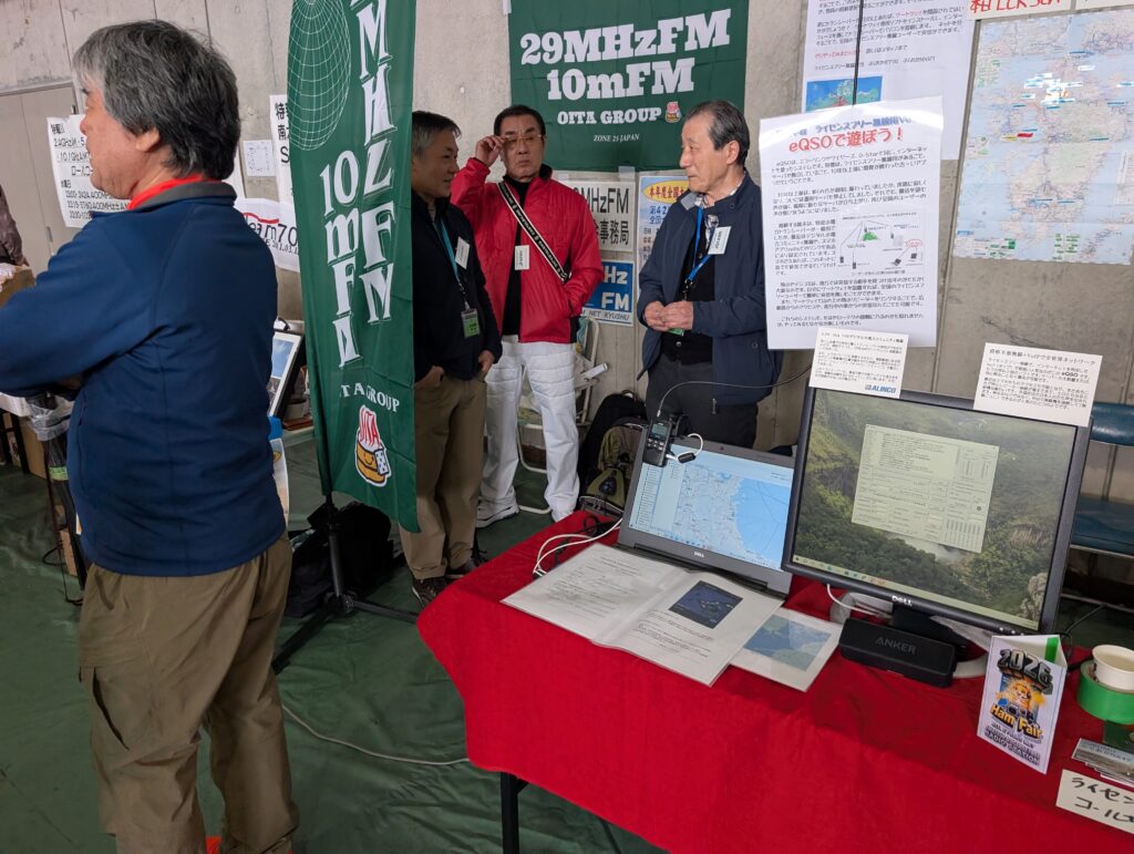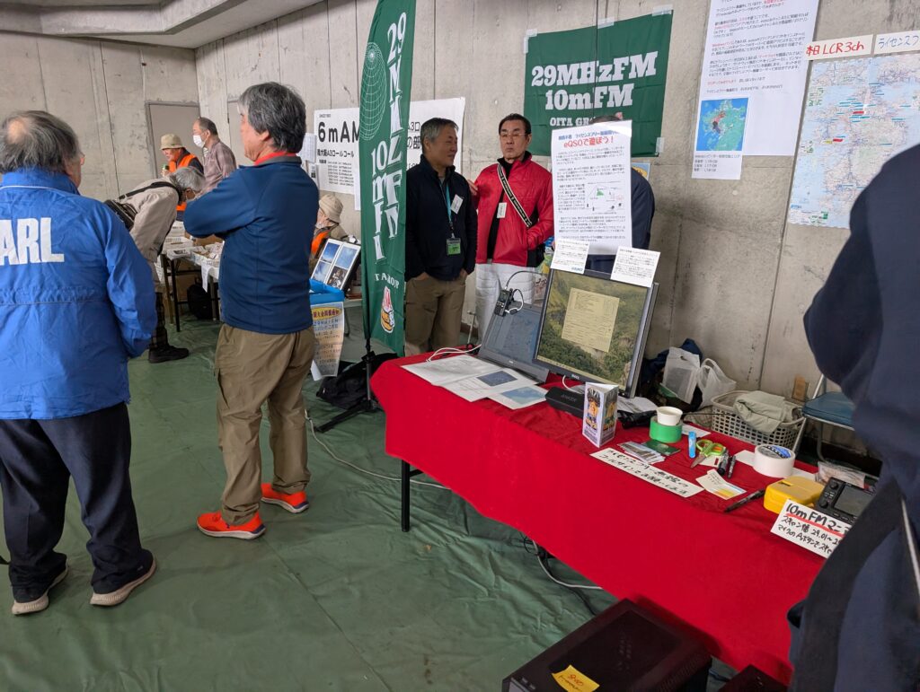 10mFM関連もまた展示しました。全国大会事務局のJM1LIG荘子さん、東京のハムフェアで10mFMのブース(Pacific Repeater Network)を展示されているJQ1ABR各務さん、そして大分10mFMグループ各局です。私の10mFM関連展示は、10mFMにはIC-705が最強かも?ということで、その設定をしたIC-705を展示。手抜きです~