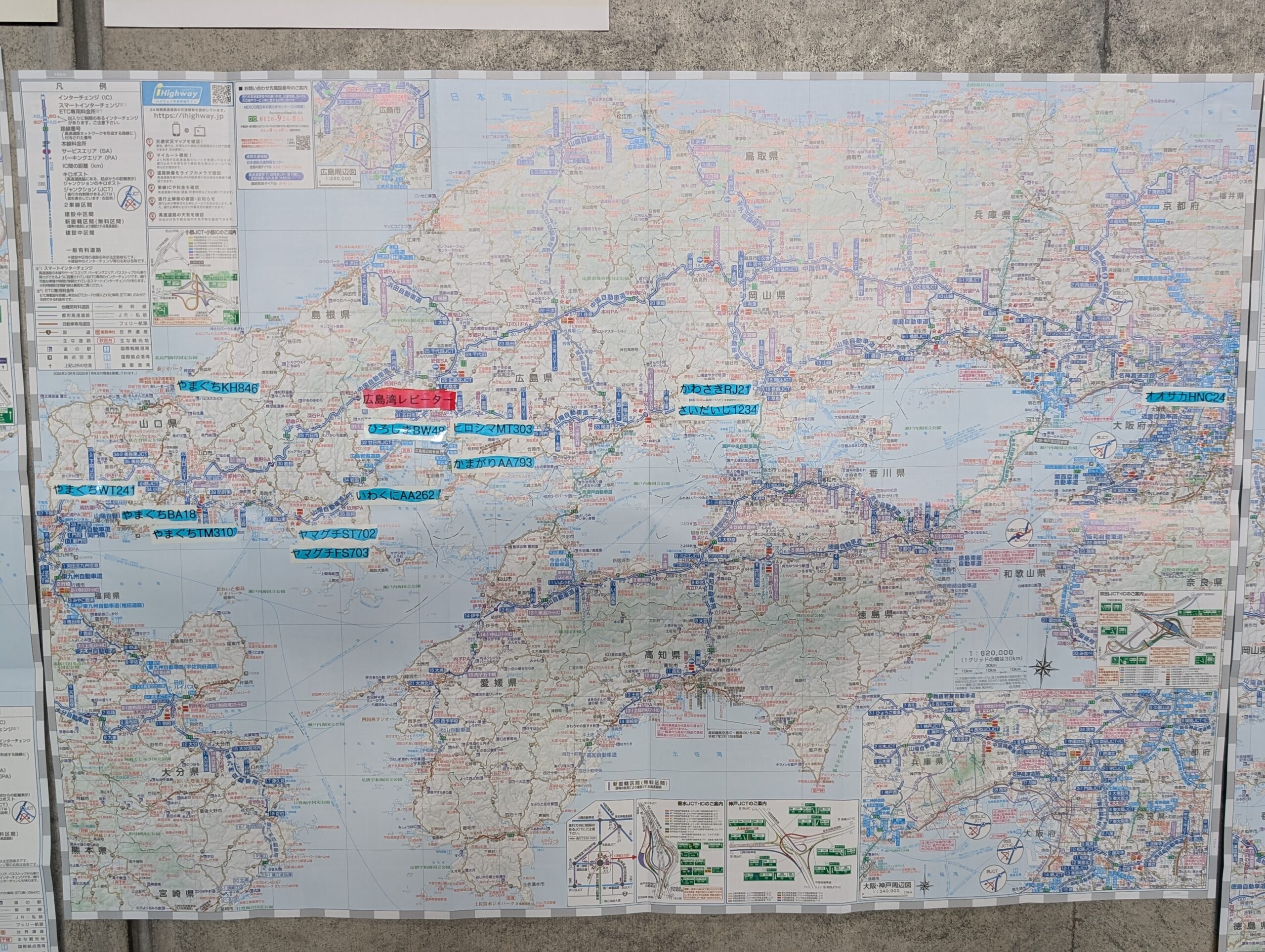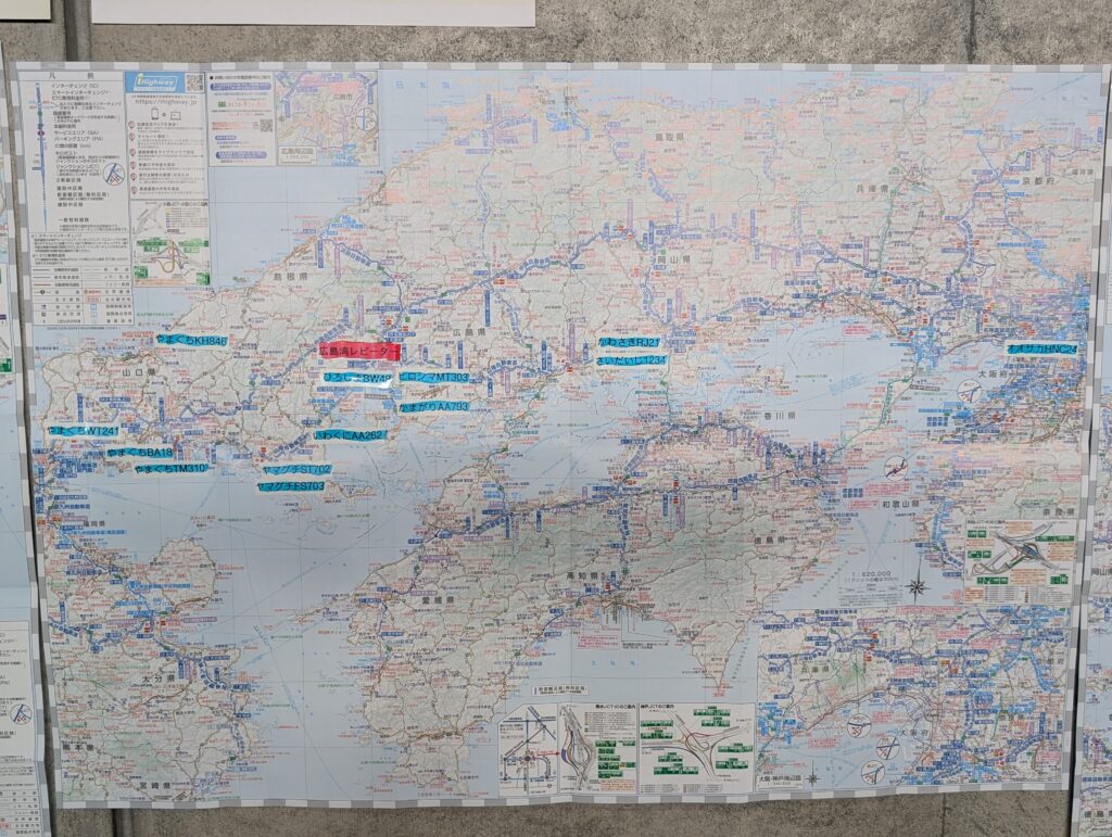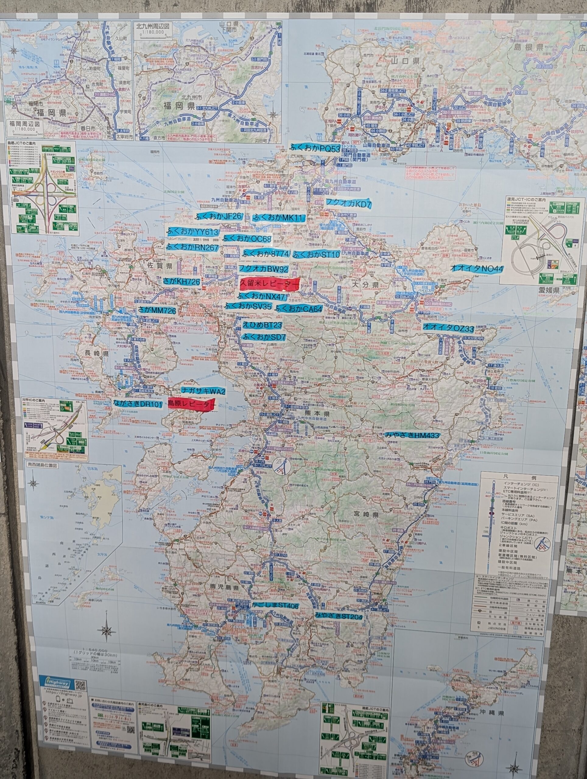 3枚目の関西エリア。上部には東日本の局2局貼っています。光が反射しててすみません。